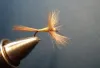 Later my friend and I ran into problems on our favorite stream, when the tiny Caënis dayflies hatched. The trout sipped the fresh emerged flies all over the water - but they rejected all the flies we offered. Then we found a note in a magazine saying, that the fly with the peculiar name - the 'Grey Duster' - should be the right medicine, if it was tied with a parachute hackle. |