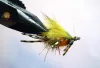 This fly used to be a twist fly like the yellow Twist of Lemon, but it changed and eventually lost the typical twisted body. It has a normal tinsel body and a thorax of peacock herl, but looks much like the Twist of Lemon. |