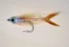A mobile tailed baitfish pattern tied with organza and synthetic fibres |